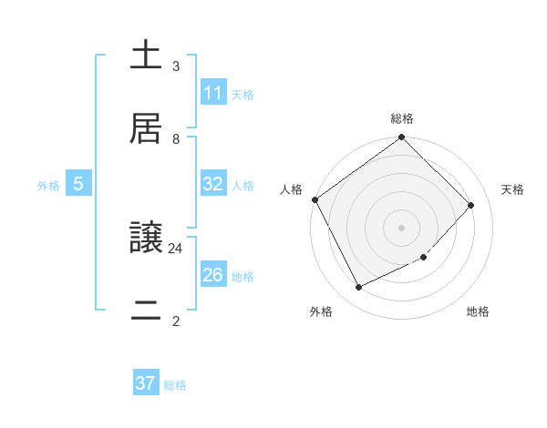 土居 譲ニさんの総格は37画の5点!