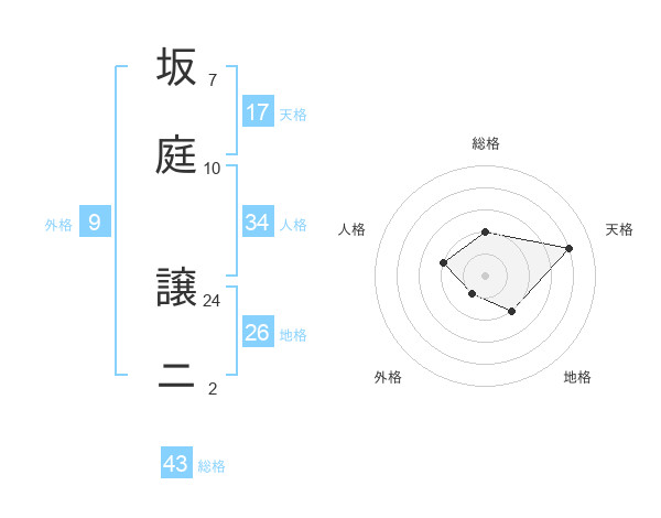 坂庭 譲ニさんを姓名の画数から五運を鑑定