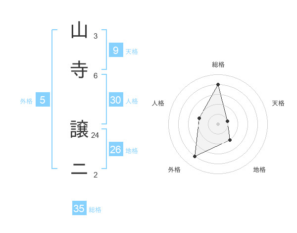 山寺 譲ニさんの総格は35画の4点!