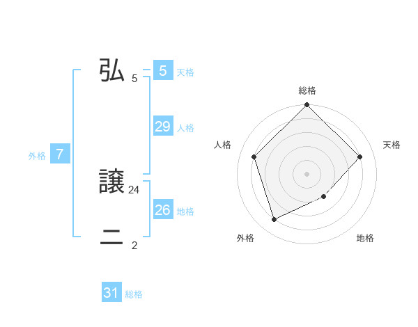 弘 譲ニさんの総格は31画の5点!