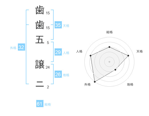 歯歯五 譲ニさんの外格は32画の5点!
