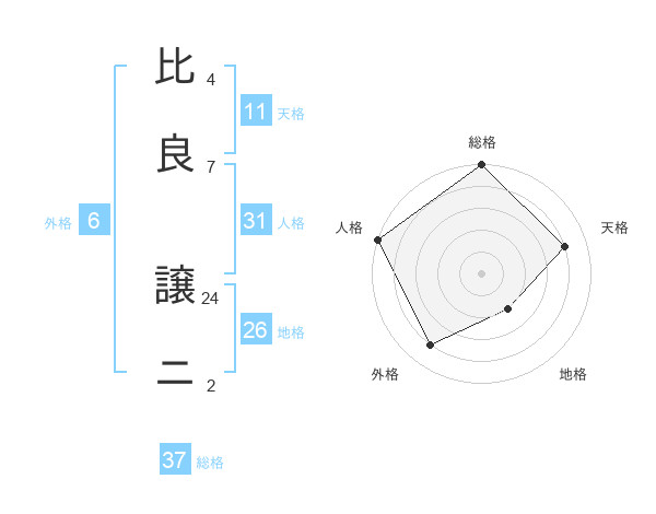 比良 譲ニさんの総格は37画の5点!
