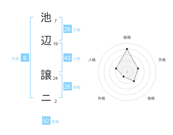 池辺 譲ニさんを姓名の画数から五運を鑑定