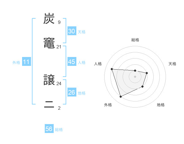 炭竈 譲ニさんの総格は56画の1点!