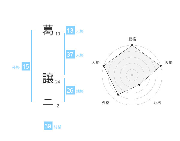 葛 譲ニさんの天格は13画の5点!