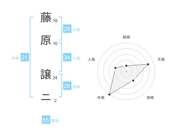 藤原 譲ニさんの総格は55画の1点!