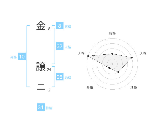 金 譲ニさんの総格は34画の2点!