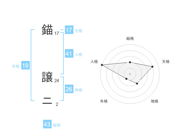 錨 譲ニさんを姓名の画数から五運を鑑定