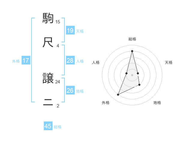 駒尺 譲ニさんの総格は45画の4点!