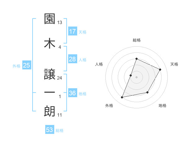 園木 譲一朗さんを姓名の画数から五運を鑑定