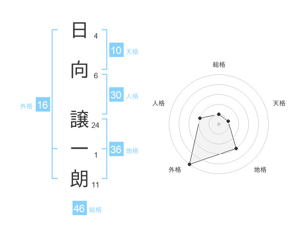 日向 譲一朗さんの総格は46画の1点!