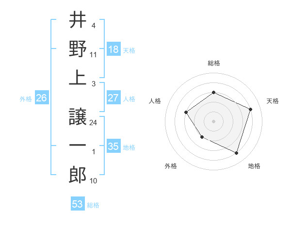 井野上 譲一郎さんを姓名の画数から五運を鑑定