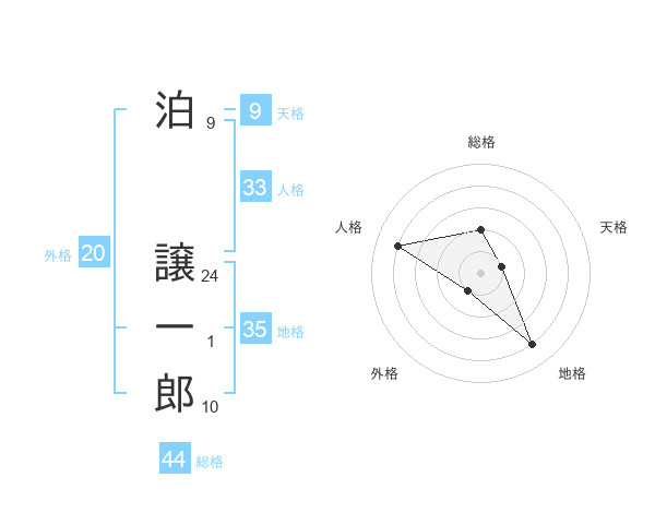 泊 譲一郎さんを姓名の画数から五運を鑑定