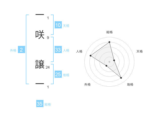 一咲 譲一さんの総格は35画の4点!