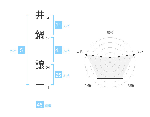 井鍋 譲一さんの天格は21画の5点!