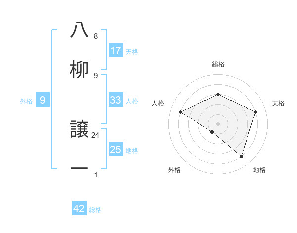 八柳 譲一さんの総格は42画の3点!