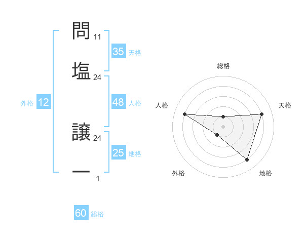 問塩 譲一さんの総格は60画の1点!