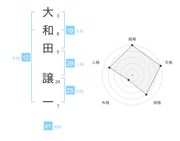 大和田 譲一さんを姓名の画数から五運を鑑定