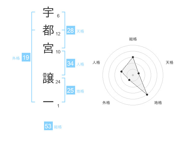 宇都宮 譲一さんを姓名の画数から五運を鑑定