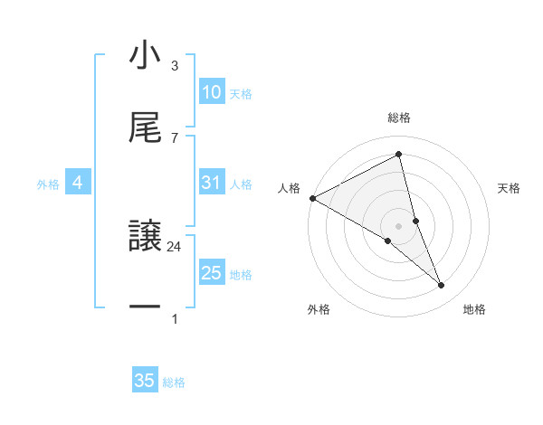 小尾 譲一さんを姓名の画数から五運を鑑定