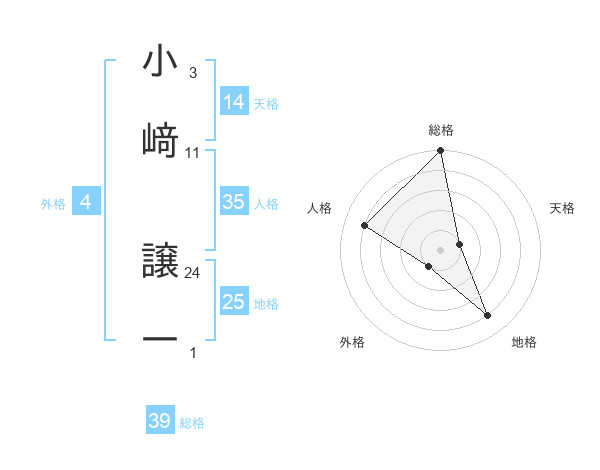 小﨑 譲一さんを姓名の画数から五運を鑑定