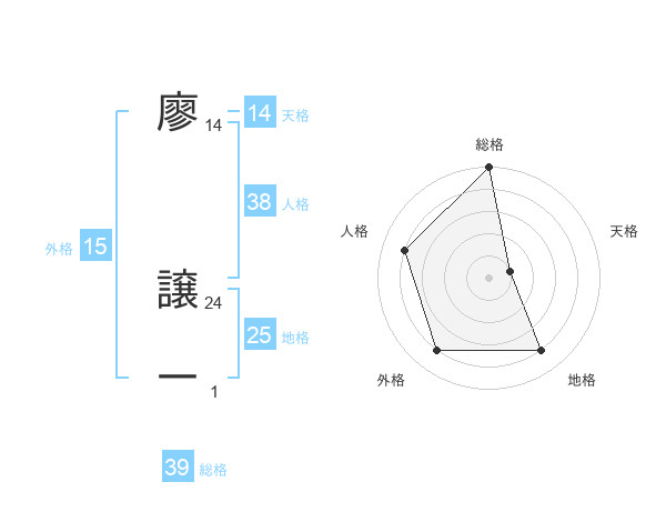 廖 譲一さんの総格は39画の5点!
