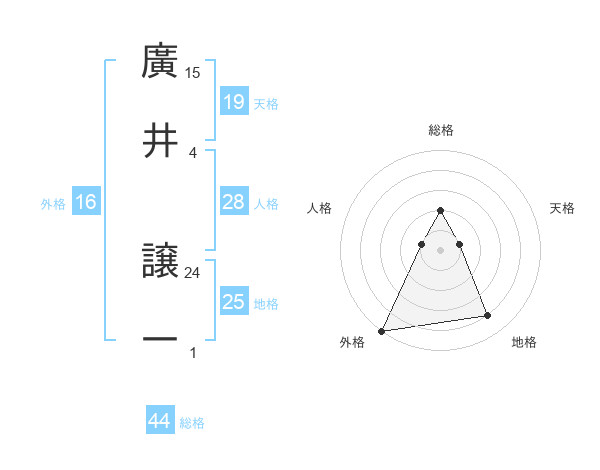 廣井 譲一さんの総格は44画の2点!