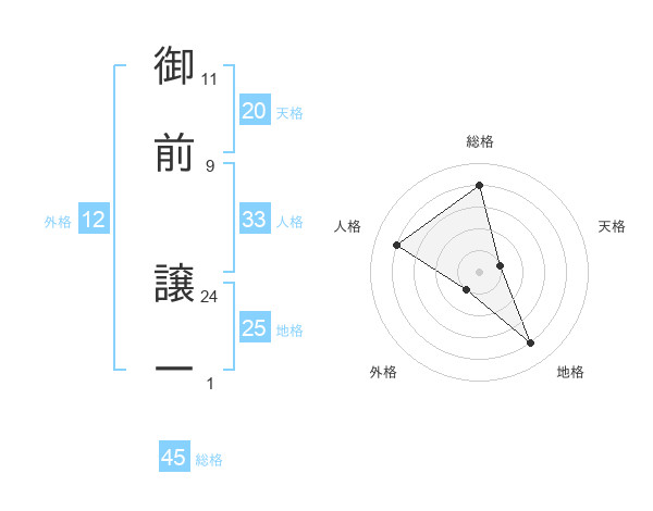 御前 譲一さんの総格は45画の4点!