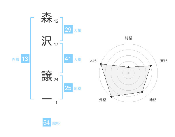 森沢 譲一さんを姓名の画数から五運を鑑定