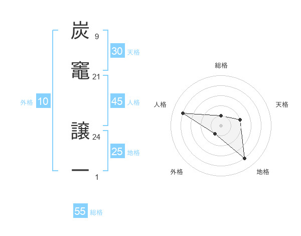 炭竈 譲一さんの総格は55画の1点!