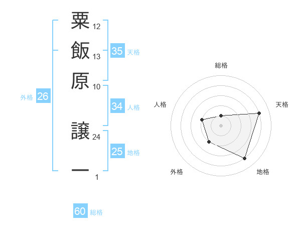 粟飯原 譲一さんを姓名の画数から五運を鑑定