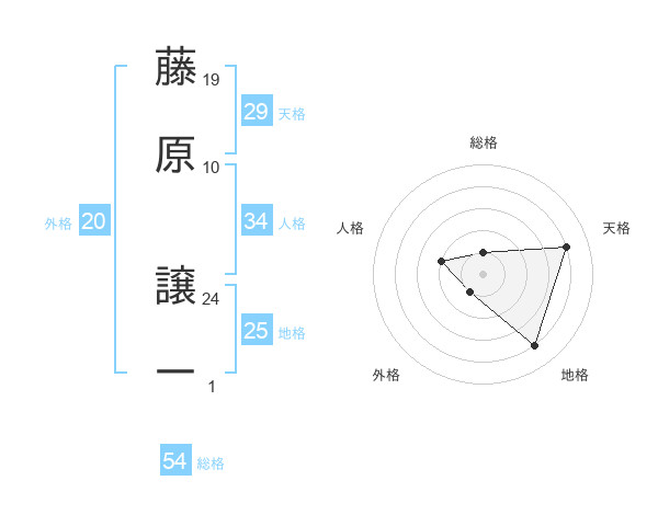 藤原 譲一さんの天格は29画の4点!