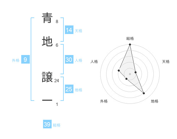 青地 譲一さんの総格は39画の5点!
