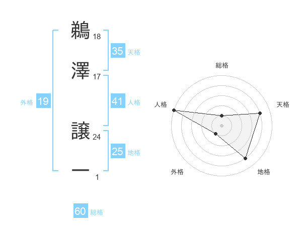 鵜澤 譲一さんの総格は60画の1点!