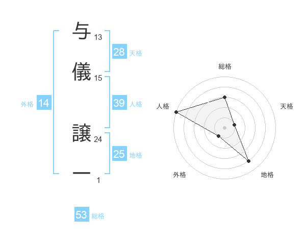 与儀 譲一さんを姓名の画数から五運を鑑定