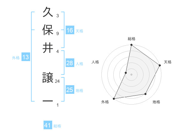 久保井 譲一さんを姓名の画数から五運を鑑定