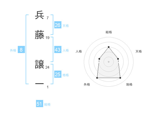 兵藤 譲一さんの総格は51画の3点!
