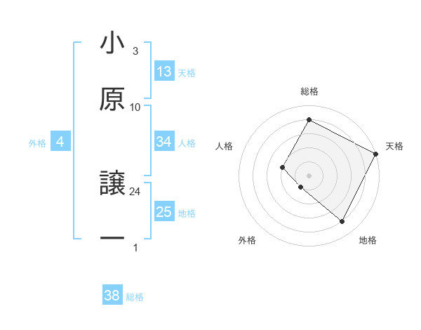 小原 譲一さんの総格は38画の4点!