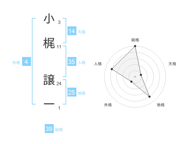 小梶 譲一さんを姓名の画数から五運を鑑定