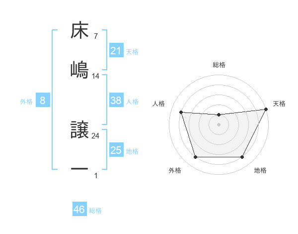 床嶋 譲一さんを姓名の画数から五運を鑑定