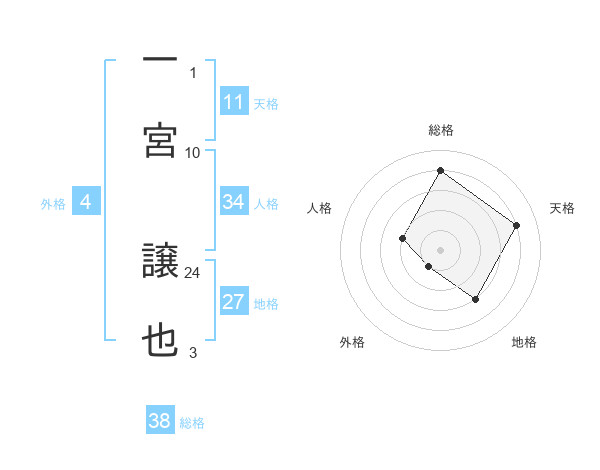一宮 譲也さんを姓名の画数から五運を鑑定