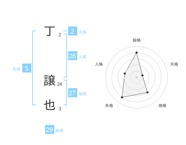丁 譲也さんの総格は29画の4点!
