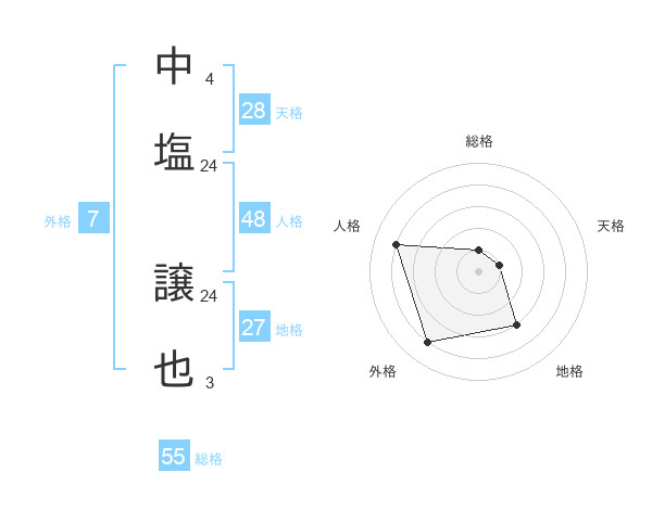 中塩 譲也さんの総格は55画の1点!