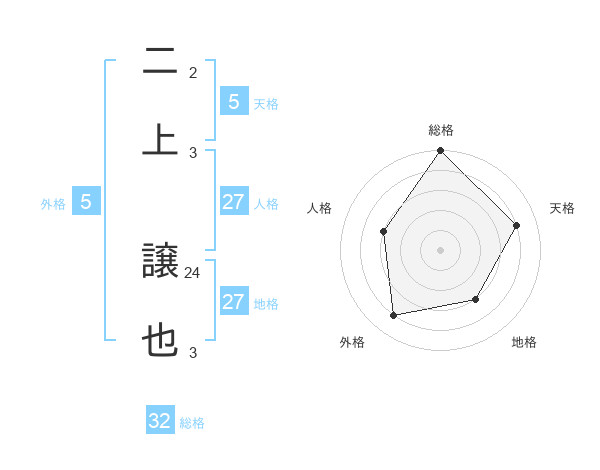 二上 譲也さんの総格は32画の5点!