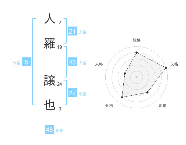 人羅 譲也さんを姓名の画数から五運を鑑定