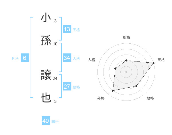 小孫 譲也さんの天格は13画の5点!