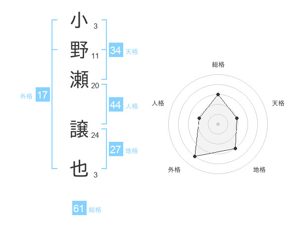 小野瀬 譲也さんを姓名の画数から五運を鑑定