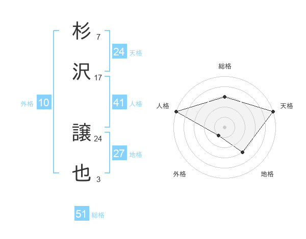 杉沢 譲也さんの総格は51画の3点!