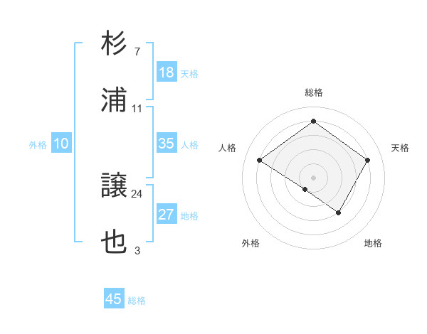 杉浦 譲也さんを姓名の画数から五運を鑑定