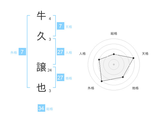 牛久 譲也さんを姓名の画数から五運を鑑定